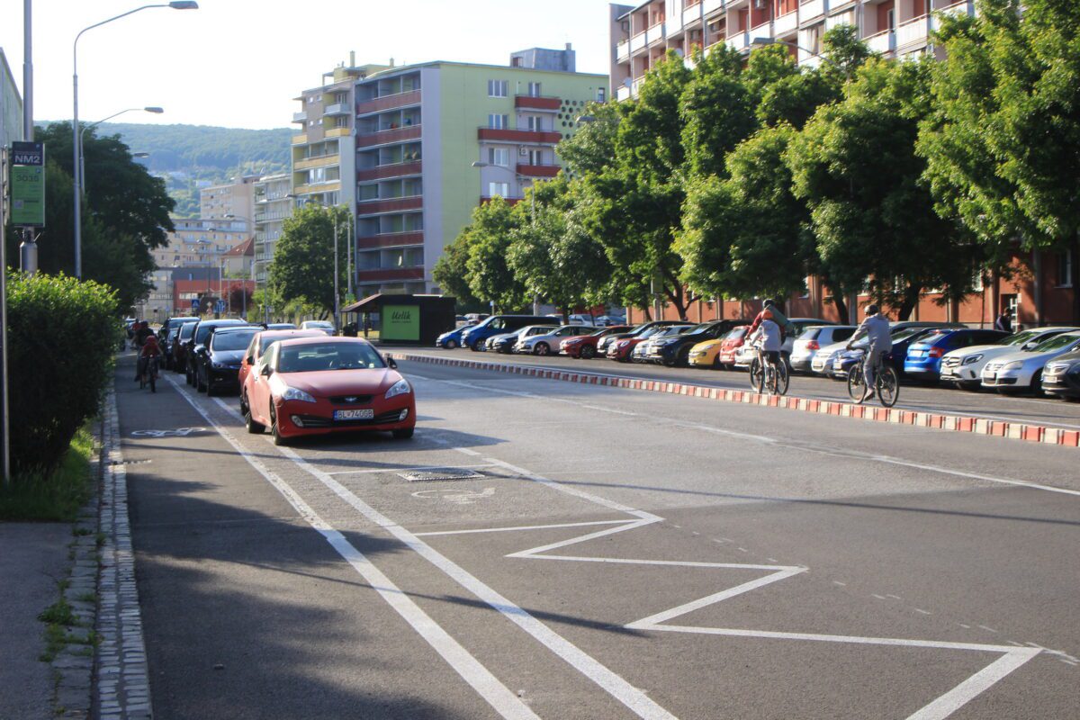 S parkovacou politikou súvisí aj ochranný pruh pre cyklistov na Sliačskej. Dlhý je cca 460 metrov a dostať sa ním možno aj na prvú bicyklovú cestu na Muštovej.